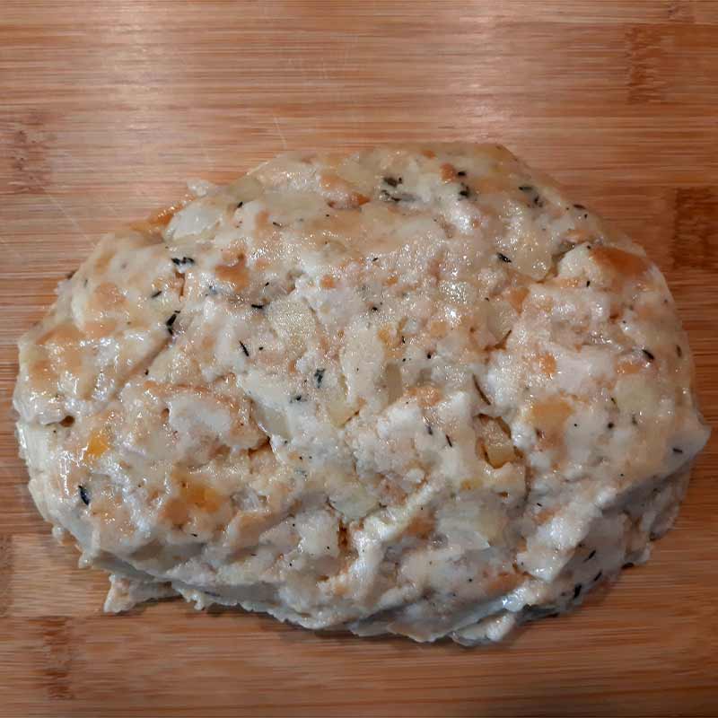 Unsere Truthahn Füllung besteht aus frischem Apfel, Zwiebeln und Thymian und wird liebevoll zubereitet. Sie ist ein echter Geschmacksträger und macht Ihren Truthahn oder Ihre Pute zu einem echten Highlight. Diese Füllung ist aber nicht nur für Truthahn und Pute geeignet, sondern auch, um Apfel-Zwiebel-Thymian-Knödel zu formen und im Salzwasser auszukochen – entweder mit den Resten der Füllung oder als eigenständiges Gericht.