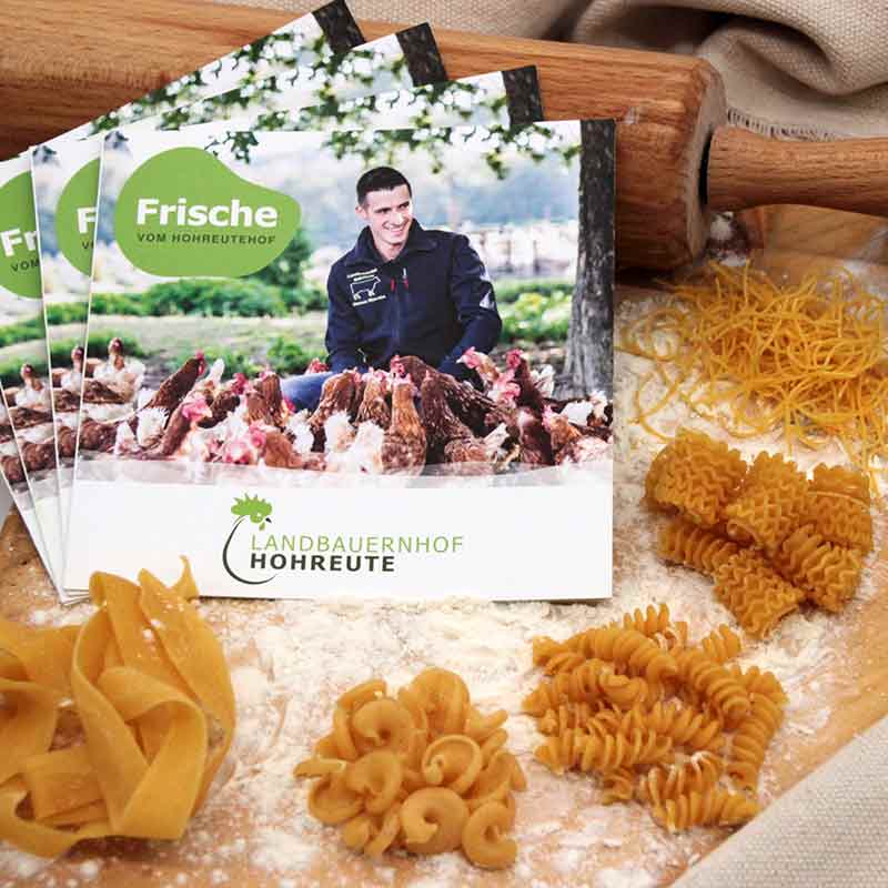 Eiernudeln sind eine einzigartige Nudelspezialität, die auf traditionelle Weise in Handarbeit hergestellt werden. Sie werden aus Dinkel- oder Weizengrieß und Freilandeiern vom Landbauernhof Hohreute, ohne Zusatzstoffe hergestellt und in verschiedenen Formen angeboten.