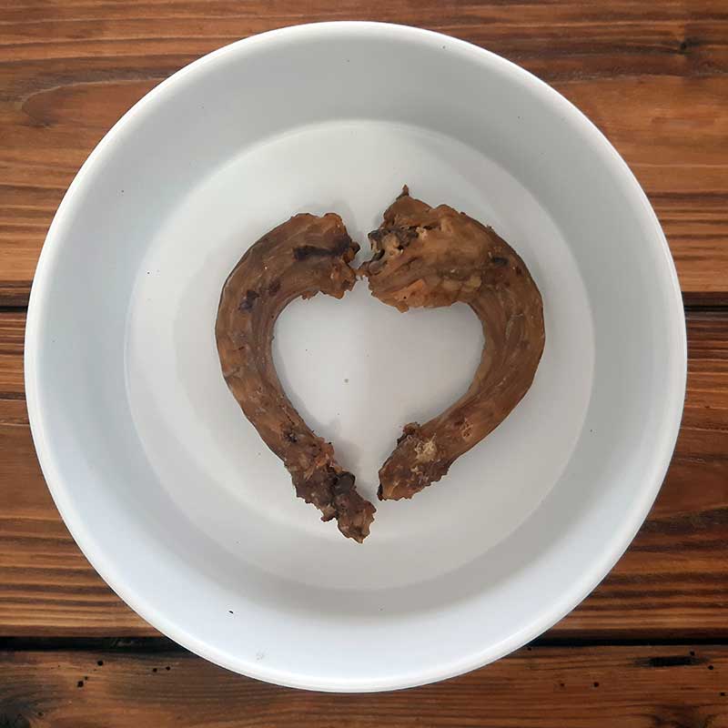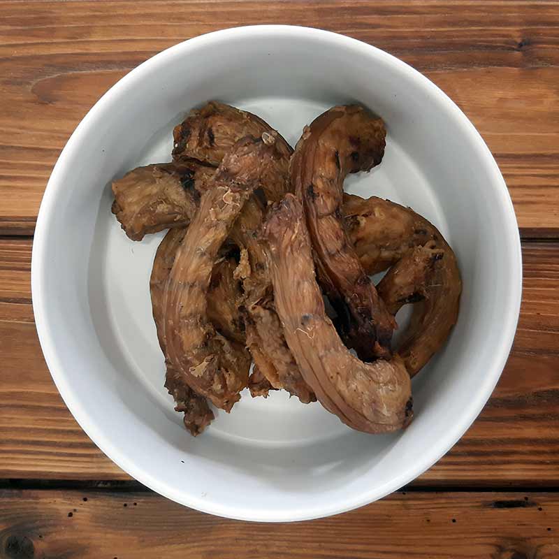Hähnchenhälse getrocknet eignen sich auch zur Zahnpflege, insbesondere für kleinere Hunderassen. Die knackigen Hälse helfen, Zahnbelag zu entfernen und das Gebiss zu stärken.