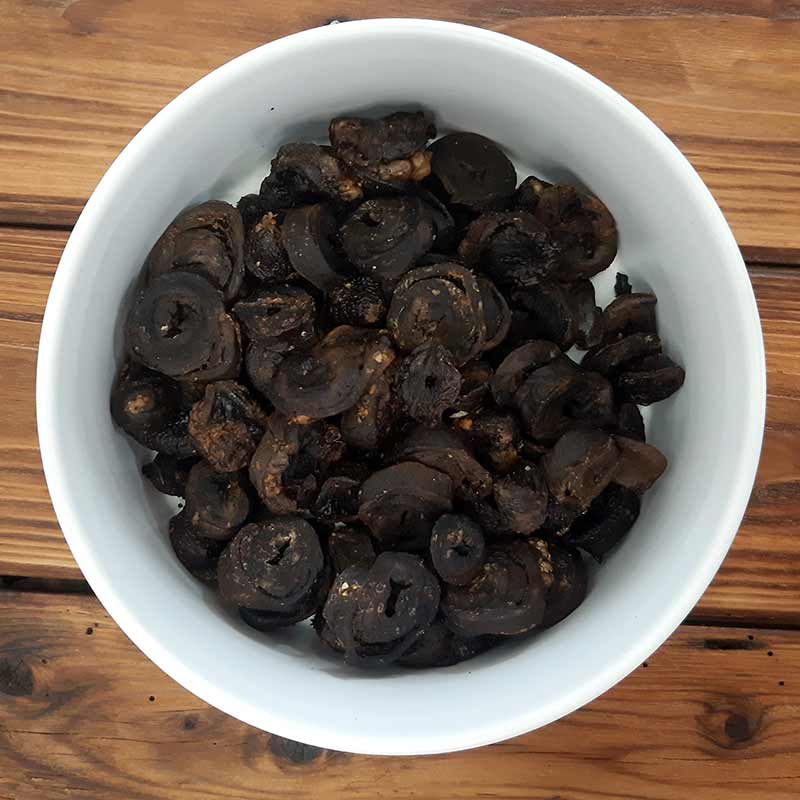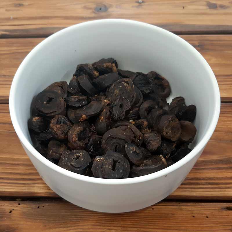 Getrocknete Putenherzen in Scheiben geschnitten, eine gesunde und köstliche Belohnung für deinen Vierbeiner.