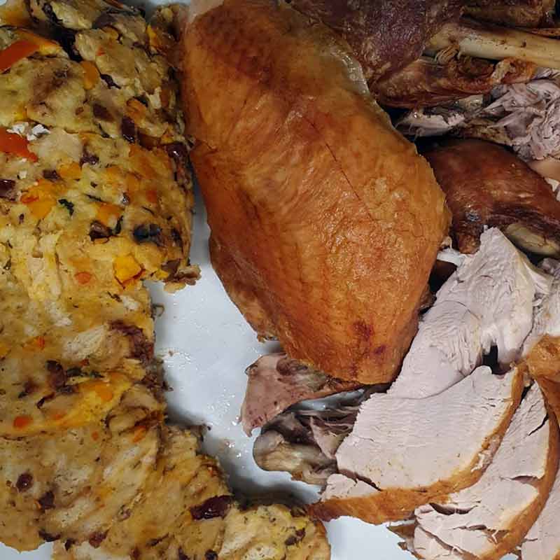 Unsere Füllung ist einfach und schnell zuzubereiten: Du musst sie nur auftauen und in deinen Truthahn oder deine Pute füllen. Und dank des Einweg-Spritzbeutels ist sie auch ganz einfach zu dosieren und zu verteilen.