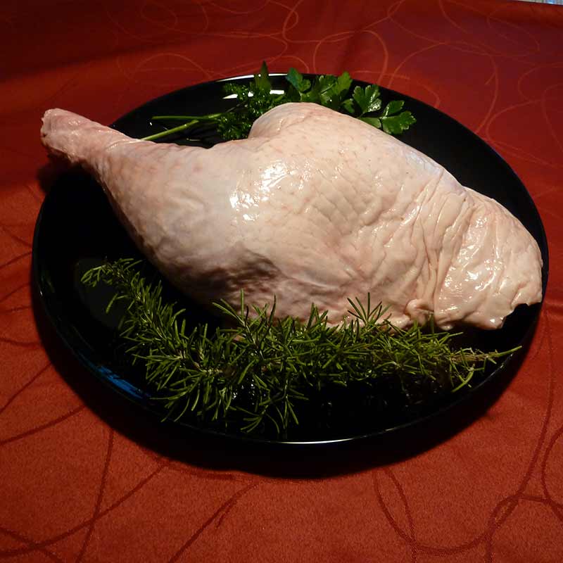 Unsere ganze Truthahnkeule ist die perfekte Wahl, wenn es mal nicht gleich ein ganzer Truthahn sein soll. Die Truthahn-Keule ist ein schmackhaftes und leckeres Fleisch, das jeder auf seinem Tisch haben möchte. Unser Truthahnfleisch wird direkt auf dem Hof hergestellt und ist reich an Vitaminen und Eiweiß, was es zu einem idealen Genuss für eine bewusste und gesunde Ernährung macht.